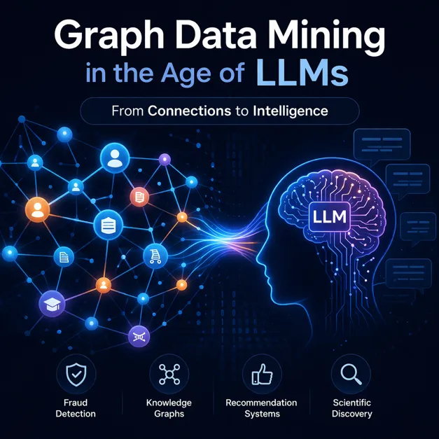 Graph data mining focuses on analyzing relationships between entities rather than treating data as isolated records. By representing data as nodes and edges, it enables the discovery of patterns within complex networks such as social graphs, transaction networks, and knowledge graphs. With the rise of Graph Neural Networks (GNNs), deep learning can now effectively model relational structures, improving tasks like node classification and link prediction. More recently, integrating large language models (LLMs) with graph mining has created hybrid systems that combine structural reasoning with semantic understanding. This approach enhances accuracy, interpretability, and insight extraction from both structured and textual data. As data becomes more connected and dynamic, graph mining—especially when combined with LLMs—plays a growing role in applications such as fraud detection, recommendation systems, and scientific discovery.